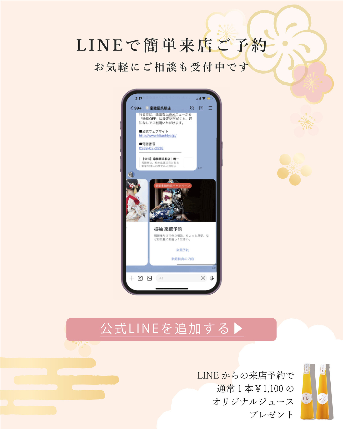 レンタル料金は振袖によって異なりますが税込158,000円~ご準備しております。全国的なレンタル料の平均価格は税込み200,000円前後ほどになります。常陸屋のレンタル平均は158,000円~380,000円ほどになります。