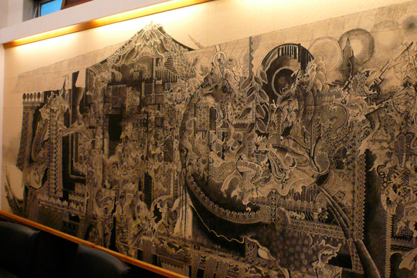 店内には、現在栃木県日光市に在住の画家、香川大介の壁画が展示されています。フランスでのスケートボードデザインや、絵画収入による日本徒歩縦断などを経て、香川はその独自の視点で日本の風景や文化を捉え直し、彼の作品には深い愛情と理解が込められています。