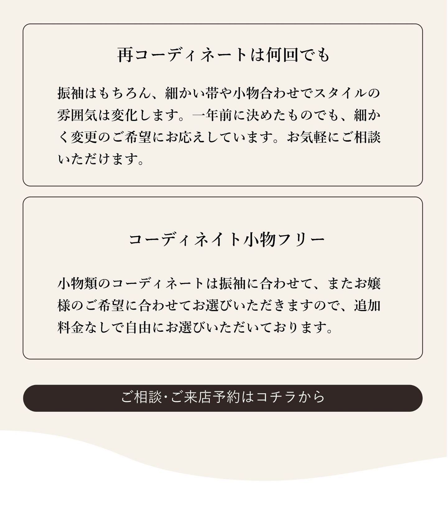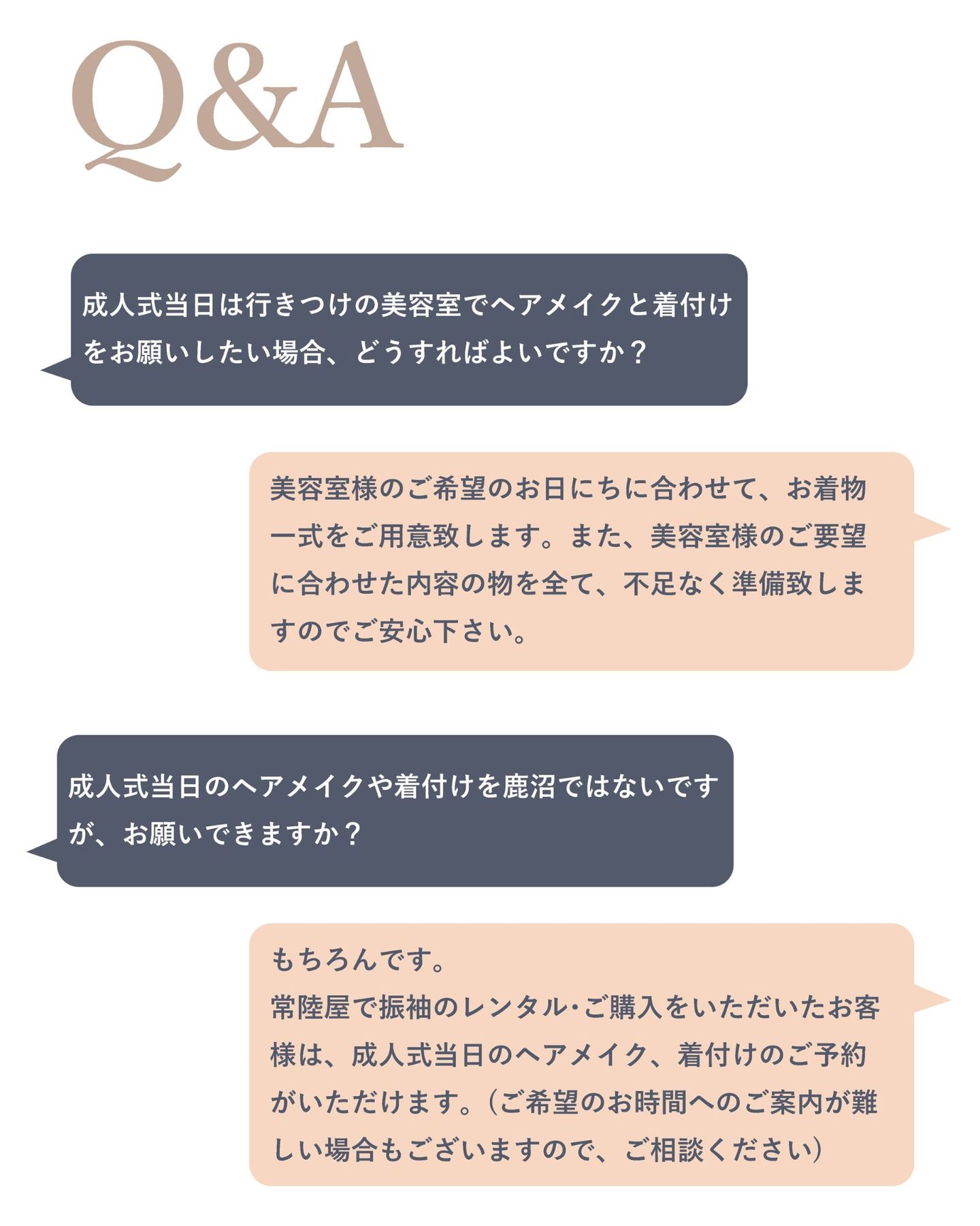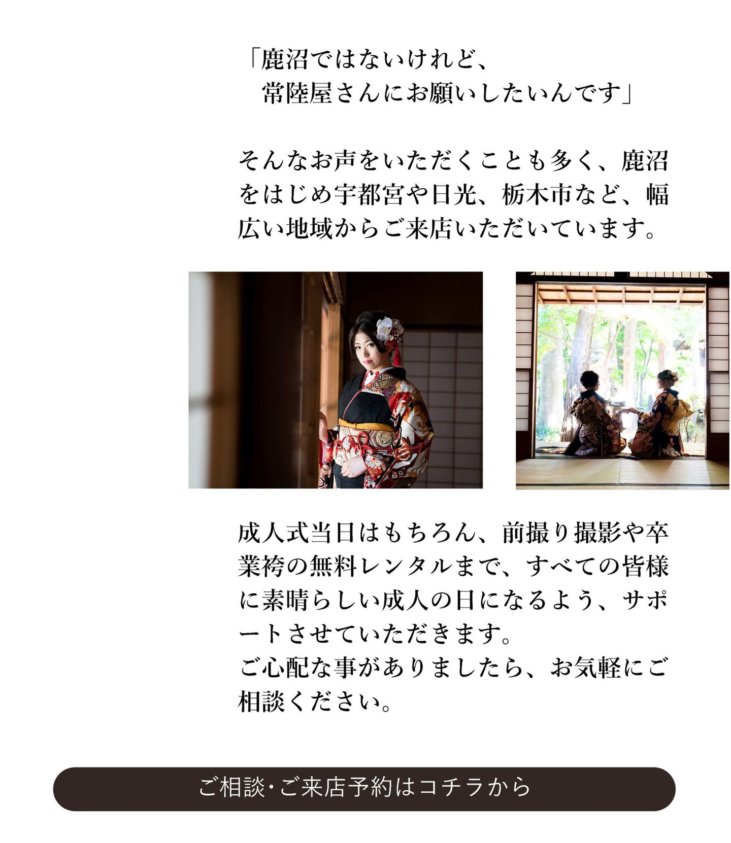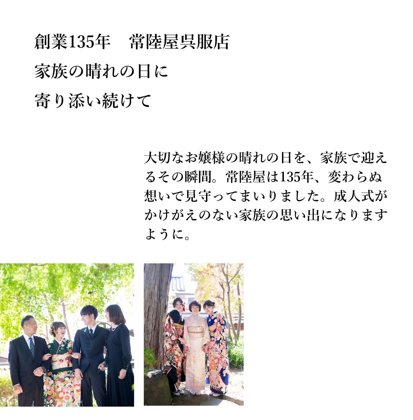 ※成人式当日は常陸屋で着付け・ヘアメイクはもちろん、他店の美容室などをご利用したい場合の着物等のご手配も、柔軟にご対応させていただきます。